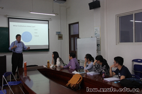5月4日,芝加哥肯特学院派Douglas  Godfrey教授来我院讲授LLM硕士必修课程《美国法律体系概论》。我院副院长简基松教授及参加本次项目同学们到场聆听。