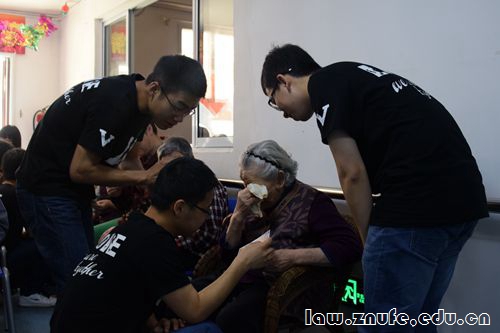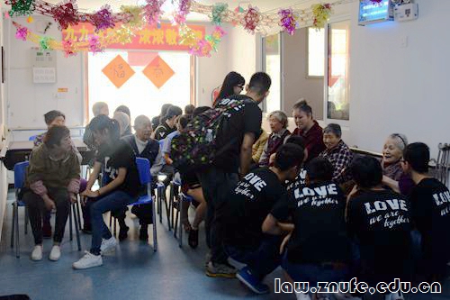 5月9号上午,法学院志愿者协会爱心事业部的志愿者们走进敬老院,看望户部巷社区养老服务中心瑞福安敬老院的老人们。