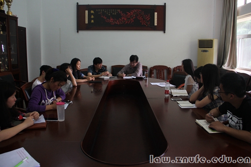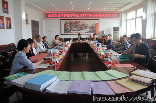 5月13日上午8点30分,中南财经政法大学本科教学工作状态评估专家组张新国教授、何捷一教授、高利红教授以及工作组的刘建秋主任、潘明慧科长一行到法学院对我院本科教学工作进行审核评估。法学院院长徐涤宇教授、院党委肖崇明书记、副院长黎江虹教授、副院长简基松教授、副院长胡弘弘教授、院党委袁桂君副书记以及院本科教学状态评估工作小组成员参与了此次会议。