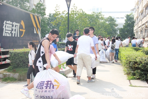 9月2日下午,我院2014级男生和志协招募的志愿者们,纷纷来到女生宿舍滨湖5号楼下,帮助女生们搬运行李。