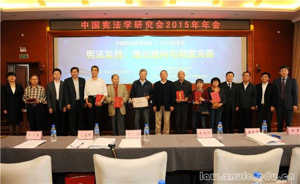 根据以上标准,经常务理事会认真充分的讨论,于中国宪法学研究会2015年年会开幕式上,中国宪法学研究会会长、中国人民大学法学院院长韩大元教授在讲话中表达了对老一辈宪法学者的感谢,代表中国宪法学研究会颁布了“中国宪法学发展终身成就奖”和“中国宪法学发展特别贡献奖”。