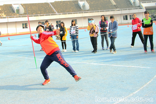 古有木兰冲沙场,今有福旦跑三千。在女子3000米决赛中,张福旦凭借充沛的体力,稳健的步伐独占鳌头,令其他对手难以望其项背,终领先第二名1分12秒一举夺魁。法学院的看台上,大旗挥舞,喝彩不断,前来观赛的同学不断为她呐喊助威。赛后,张福旦高举院旗绕场一周,尽显我院巾帼风范。起跑,加速,投掷,老将龚碧菲手中的标枪飞射而出,在24.21米处停落。凭此傲人成绩,龚碧菲轻松折桂。范玙表现不俗,荣获女子标枪比赛第五的好名次。