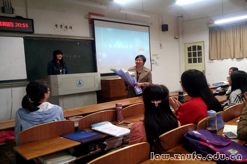 答疑环节结束后,维权事业部献上鲜花,表达对孟令志老师的感谢,孟老师走之前同服务团“交心”,表示希望服务团和维权事业部努力践行法律人责任精神,克服困难,积极促进法律志愿事业的发展,并预祝本届服务团活动开展顺利!