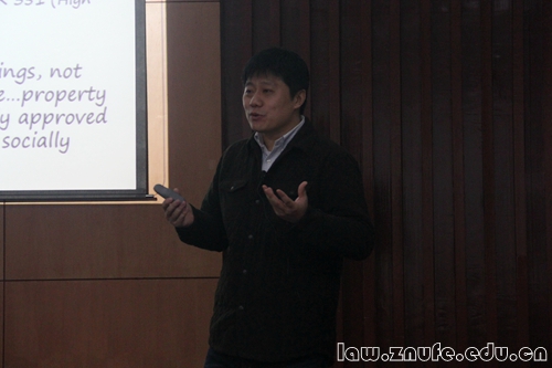 12月2日下午,2015年秋季学期高层次学者短期讲学第一讲在模拟法庭(三)举行。应法学院院长徐涤宇教授的邀请,香港城市大学法学院副院长陈磊博士来法学院进行短期讲学,担任此次短期讲学的学者,为法学院学生主讲《Property Law: A Common Law Perspective》。