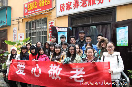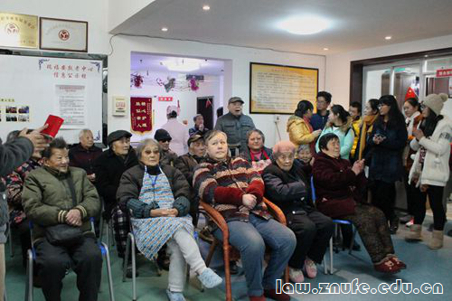 12月20日上午,法学院志愿者协会爱心事业部的志愿者走进户部巷社区瑞福安敬老院,开展了以“爱心敬老,情暖江城”为主题的关爱老人的活动。