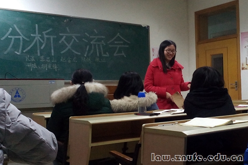 2015年12月20日晚上,中南财经政法大学法学院志愿者协会维权事业部在首义校区文泽103教室召开了案例分析交流会,本次活动邀请到“巾帼维权”大学生法律服务团成员民商法硕士李萍和2013级本科生陈双,现场对维权事业部副部及干事进行案例分析和学习指导。