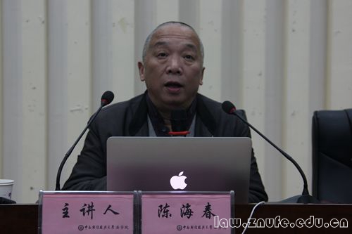 陈海春教授从理论和实践两个视角出发,对《中国共产党廉洁自律准则》和《中国共产党纪律处分条例》两项法规展开解读。他首先就习近平新时代的责任、章法与担当进行背景分析,并指出治党要整顿腐败风纪、重构政治生态,做到“党要管党,从严治党;依规治党,以德治党” 。