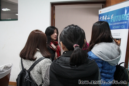 宣讲内容分为四个部分,推介人员对杭州市就业环境、检察院系统编制、报考浙江省公务员的相关内容以及大家最关心的工资待遇问题作出详细说明。推介人员鼓励在场学生积极报考,并称赞我校法学院学生的专业知识水平在业内可圈可点,希望我院学生再接再厉。他们寄语在场的非大四学生,要打下坚实的法学专业基础,这样对将来的工作可以有很好的帮助。学生一定要注重学习,切不可本末倒置。现场气氛活跃、互动频繁,众多学生从中收获了有效信息。