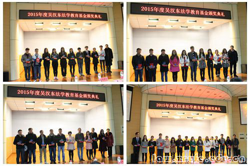 1月3日下午,2015年度吴汉东法学教育基金会颁奖典礼于文潭楼报告厅如期举行。我校学术委员会主任、知识产权研究中心主任吴汉东教授,吴汉东法学教育基金会理事长赵家仪教授、副理事长汪涌律师,全国各地校友会代表以及法学院、刑事司法学院、知识产权学院、法律教育硕士中心各位领导出席本次活动。