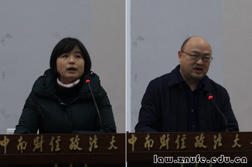 麻昌华副院长就自己分管的工作进行述职,从工作表现、辅修双学位管理、校友会工作、学院社会服务培训工作四个方面进行介绍,并表示在新的一年里,会加强与校友之间的联系,及时调整工作方式,适应新常态。黎江虹副院长将自己去年的工作总结为挑战、适应、积极创新。她从研究生工作、师资引进、图书馆建设等方面介绍自己的工作,在强化研究生创新能力、提高硕博研究生质量、开拓校内外实践基地方面成绩斐然。简基松副院长就我院国际班建设、国际留学教育发展、聘请外籍教师开课、开设全英文授课课程等内容作了具体阐述,细数我院在国际交流方面在2015年所取得的进步。张红副院长介绍了我院在学术、科研方面取得的成果。在去年一年里,法学院各种学术活动交流频繁,科研重大立项成果丰富,学术论文发表数量众多,成果颇丰。胡弘弘副院长就教学管理、课程建设、校外法学教育实践工作、法学院创新试验课程等工作成果进行了介绍,并对2016年进行了展望,希望能够在申报网络视频公开课、网络评教机制、人才培养方案完善方面取得进一步发展。袁桂君副书记就自我理论学习、学生工作、思想引导、文体活动、新生教育、工会活动等工作进行了汇报。