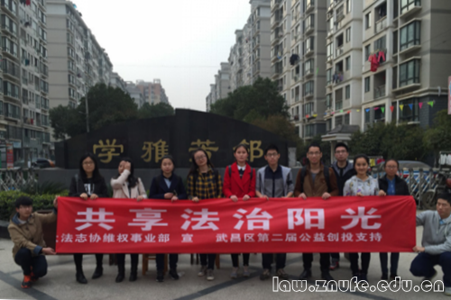 法学院志愿者协会维权事业部学雷锋小分队于3月5日至3月10日在中央花园社区、北港社区、方桂园社区开展了“反对家庭暴力,共享和美生活”主题普法活动。其中湖北省妇联副主席高勤,湖北省人民检察院联络处处长、省女检察官协会秘书长段军霞,湖北省妇联权益部部长赵少凡等莅临中央花园社区活动现场。