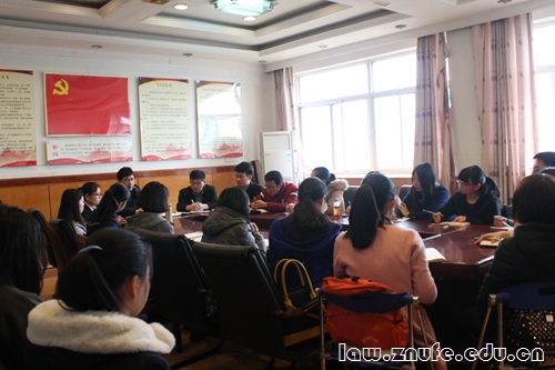 3月17日下午,法学院13级党支部在文治楼五楼党员活动室开展“两学一做”学习教育会暨两会学习工作交流会。法学院2013级党总支书记侯竟老师主持此次会议。