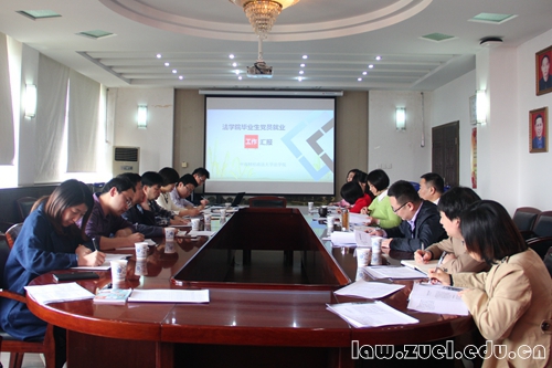 4月25日上午,校就业指导服务中心汪平主任等一行七人到法学院就毕业生就业工作进行交流。法学院党委肖崇明书记、袁桂君副书记,各级辅导员代表等出席了座谈会。座谈会在文治楼六楼会议室举行,会议由就业指导中心向敏副主任主持。