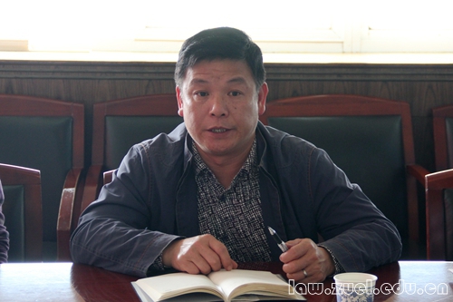 向敏副主任指出本次座谈会的主要内容为依照习近平总书记系列重要讲话的重要精神,做好理论联系实际,加强校就业指导中心与法学院的交流,推动法学院毕业生的就业工作。在接下来的发言中,汪平主任强调于2017年施行的国家统一法律职业资格考试制度对法学毕业生就业将产生重大影响。在此背景下,他认为法学学生就业指导、辅导员就业工作能力培养、毕业生实习实践等环节需要不断优化。罗先锋副主任就近期需关注的就业信息进行了介绍,并对法学毕业生就业给予了中肯的建议。