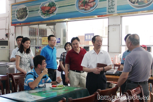 张中华书记一行来到学生九食堂,对九食堂各窗口进行走访,考察窗口用油安全、菜价、菜品状况,并向工作人员强调食品安全的重要性。张中华书记与就餐学生亲切交谈,了解学生就餐情况。最后,张中华书记一行步行至临湖四栋学生公寓,询问学生住宿体验,考察学生宿舍楼周边环境。