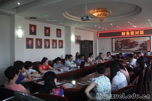 6月17日上午,财务部会计核算中心面向法学院的现场咨询活动——“财务面对面”在文治楼六楼会议室召开。我校财务部代伟副部长携会计核算中心主任邓雪梅、会计报账科王松副科长等财务人员到场提供咨询。法学院党委肖崇明书记,法学院院长助理江河教授,陈柏峰教授、张继成教授、王小琼副教授及法学院党政办公室主任李晓老师等众多教职工一道参会,并认真听取了财务经费报销相关政策讲解。