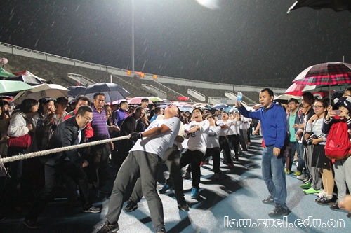 怒吼连连,法学院拔河天团先战文澜,再斗新闻;鼓声震天,势如虹再败中韩,全胜姿态迎战金融。赛场上人潮涌动,秋雨纷纷亦难阻师生热血。
