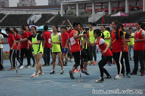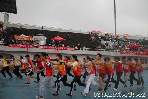 法学学子齐心协力,共战趣味赛场。齐心协力跑运动员们配合默契,步伐一致,稳健迈向成功。运动员们身上永不言弃的倔强,是这赛场上独树一帜的风景。