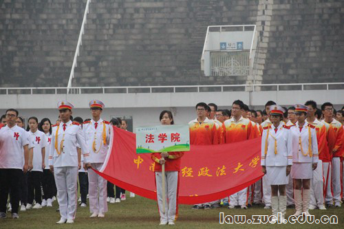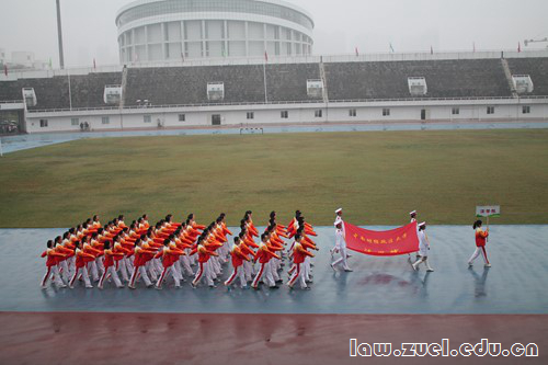 开场如“沙场秋点兵”般声势浩大。身穿火红运动服的法学院代表队方阵,于激扬的运动员进行曲中,昂首阔步地走过主席台。
