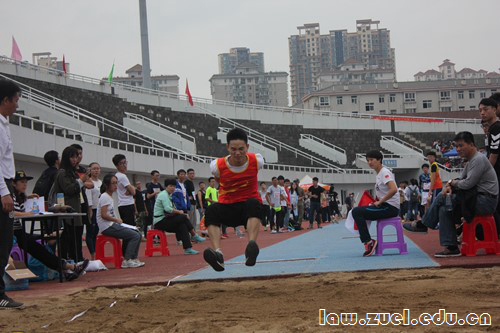 身躯一跃,矫健的身影化为一道完美的抛物线,跳远亚军刘业平稳落地。田赛场上,数桂冠得主,还看法学院。