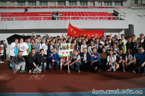 夜幕降临,此次校运会进入尾声。锦旗飞扬,号声嘹亮。在这片洋溢着欢乐与热情的土壤上,法学院运动健儿们用汗水与泪水浇灌而成的活力之花,永不枯朽。