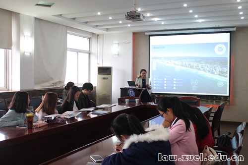 10月27日下午,澳大利亚邦德大学与法学院的留学合作项目宣讲会于文治楼六楼会议室开讲。邦德大学法学院副院长Kathy Atkins教授、国际部陆晓频老师担任主讲人,多名研究生与本科生到场聆听。