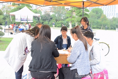 (通讯员:靖珍珍 乐昊 郭筱)11月13日,法学院志愿者协会创意项目部于南湖校区五羊广场举办了主题为“暖冬,让爱多一度”系列活动,本活动是通过写明信片的形式,向山区孩子送去祝福,让他们感受到温暖。