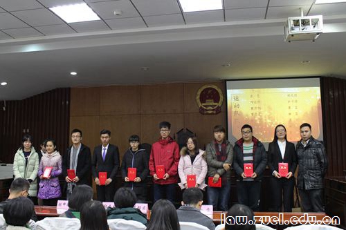 通讯员(龙美华 李良珏 赵桃)11月24日,法学院2016年校运动会表彰大会于文泰楼模拟法庭(二)举行。法学院党委袁桂君副书记,法学院分团委书记王瑄老师,分团委副书记胡坤老师,2014级辅导员张玉婷老师,2015级辅导员白雷老师、2016级辅导员张申鹏老师出席本次大会并担任颁奖嘉宾。