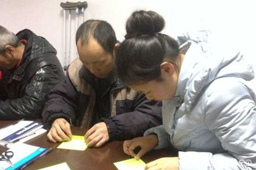 最后,是活动的爱心折纸环节。志愿者们与社矫人员一对一交流,一边聊天一边折纸,彩纸在大家的巧手下成为了精致的爱心。不少社矫人员还在爱心上写下了自己的祝福送给敬老院的老人,呈现出感恩节的一派温情。志愿者与社矫人员相谈甚欢,室内充满欢声笑语。