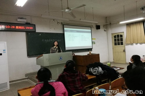 接下来,2012级毕业生陈惠也为同学们分享了她考取我校研究生的历程与其中的心得体会。陈惠师姐以372分成功考取我校法学院民商方向研究生,此次经验交流会,她也主要依据她的考试经历为大家进行了介绍。
