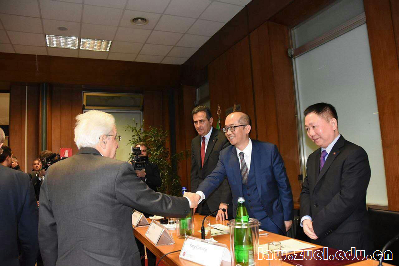 应意大利罗马第一大学校长EUGENIO GAUDIO和那不勒斯费德里克二世大学校长GAETANO MANFREDI的邀请,我校校长杨灿明教授、法学院院长徐涤宇教授、刑事司法学院院长胡向阳教授、国际交流部方磊副部长等一行四人于2017年1月12日至14日访问了罗马一大和那不勒斯费德里克二世大学,出席了两校合作建设法学研究中心的签约仪式和罗马法高培班开班仪式,并拜会了意大利共和国总统塞尔吉奥马塔雷拉(Sergio Mattarella)先生。