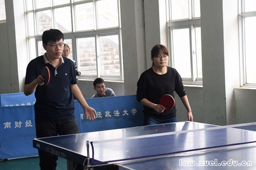 男单比赛中,法1610班李国立独占鳌头,从38人中脱颖而出。女单冠军于法1504班刘雨兮与国际法班余璐之间产生。五局三胜制,余璐快速拿下前两局,第三局双方比分胶着,刘雨兮在12平时发力拿下本局 ,第四局余璐调整状态,利用体力优势,以11:7拿下比赛。