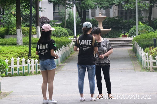 此次助残活动由分发传单、有奖竞答和“你说我猜”这三部分组成。不畏炎炎夏日,负责分发传单的同学在社区内游走,向来往的居民耐心介绍“全国助残日”,宣传此次活动。