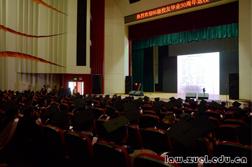 校长助理邹秉国首先对校友的归来表示了热烈欢迎。他先回忆了三十年前艰苦的读书环境,而八五级校友经历了学校从小到大的历程。邹秉国向这批祖国改革开放的亲历者、参与者和推动者致以诚挚的敬意,他认为正是通过一代代中南财经政法大学的学生对母校的不断建设,才使得其具备今天办学规模与所获成就。