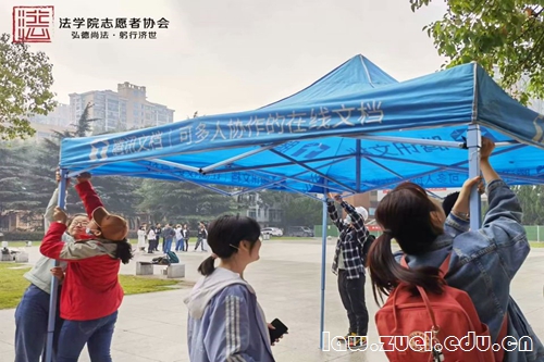 活动当天,志愿者们提前来到首义校区搬运所需物资,在首义广场搭起帐篷,摆放桌凳,张贴海报。为提高大家的参赛兴趣,增强此次活动的吸引力,志愿者们还准备了许多精美小礼品。