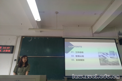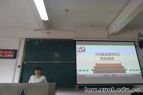 大会第三项,《中南法律评论》编辑部代表姜洋述职。姜洋表示,在过去一学年,《中南法律评论》在完成第2、3期纸质刊物出版的基础上,实现刊物上知网和北大法宝的重大突破,这将为录用的文章创造点击率,有助于在未来吸引更多优质的稿件。她希望新一届编辑部在加强内部跨学科交流的基础上,继续推进与各兄弟刊物和其他优秀期刊的合作交流,加大宣传力度,使得刊物在质与量层面都能取得显著成绩。