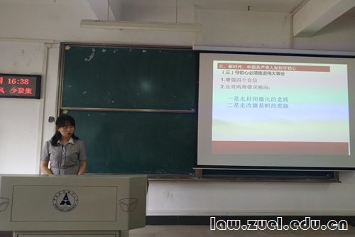 大会第七项,法学院博士韦淑玲为与会代表讲授党课。韦淑玲以“初心的力量”为题,从“不忘初心”的提出、“不忘初心”的深刻内涵、新时代中国共产党人如何守初心三方面展开,鼓励与会代表深刻理解“不忘初心”的内涵,更加自觉地坚持党的全面领导和我国社会主义制度,进行伟大斗争、建设伟大工程、推进伟大事业、实现伟大梦想,不忘初心、牢记使命,将改革开放进行到底,不断实现人民对美好生活的向往,在新时代创造出中华民族新的更大奇迹,创造出让世界刮目相看的新的更大奇迹。