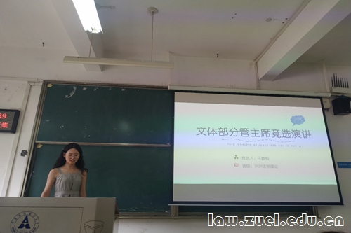 大会第四项,新一届主席团及《中南法律评论》候选人依次进行竞选演讲。各候选人从自我介绍、个人优势、工作经验、部门展望等各个方面,回顾了本学年工作的点点滴滴,陈述未来工作思路,展望辉煌未来。