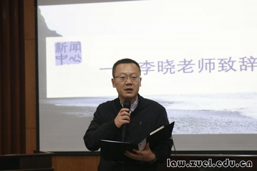 大会伊始,李晓老师首先对我院新一届新闻中心的成立表示了热烈祝贺。他赞扬了新闻中心一以贯之的优秀工作精神和杰出的工作成果。回首与新闻中心相伴走过的岁月,他感慨良多,并向成员们提出四点建议:第一,作为法学院党委组织领导下的新闻中心成员,应坚持理想信念,坚持马克思主义新闻观,树立道路自信、理论自信、制度自信;第二,应培养团队合作精神,内外两手抓,及时分享反馈;第三,应树立终身学习的观念,找到学习与工作的平衡点;第四,应坚持责任担当,建立“天下为公,舍我其谁”的理想信念,将个人前途与国家命运紧密联系在一起,加强法学院宣传阵地建设。最后,他希望同学们能够继承新闻中心的优良传统,珍惜在新闻中心的点滴时光,积极促进我院新闻工作的蓬勃发展,在青年思想引领方面取得更加丰厚的成果。