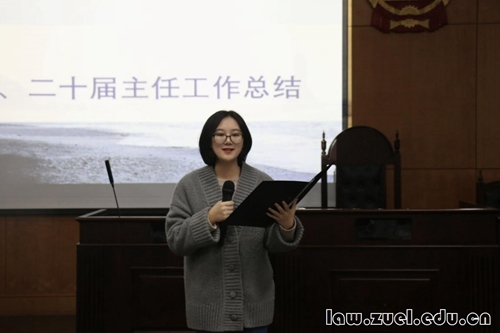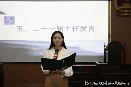 通讯员(金子欣 程璇 蔡蕾娜)10月29日下午,法学院第二十一届新闻中心成立大会于文泰楼模拟法庭(二)召开。法学院党委副书记李晓老师、法学院党政办主任司志莲老师、新闻中心指导老师曾怡然受邀出席本次大会,新闻中心第二十届主任吴梓婧,第二十一届主任张怡歌作为嘉宾出席,由周佳珣、亢浩睿两位同学担任主持人,第二十一届新闻中心全体成员到场参会。