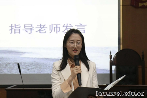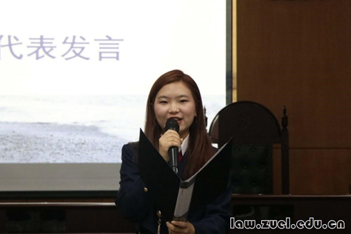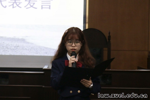 接下来是新闻中心第二十一届主任张怡歌致辞。她以接力跑的譬喻道出了新闻中心薪火相传的传承精神。总结换届以来的工作历程,她具体说明了新闻中心的进步以及创新举措。她指出下一步中心工作将继续探索新的模式,在专业、质量和效率中寻找平衡,助力学院“双一流”建设的宣传。如今,对于刚刚组建的新一届新闻中心,她希望在工作中打造专业团队,向更强更优进发;在生活中,新闻中心能成为成员们家一般的后盾,给予大家温暖与支撑。最后,她希望大家能坚持法律人的正气、保持新闻人的敏锐,秉持中心人的传统、坚持青年人的创新,不忘初心,伴中南法学驰而不息。