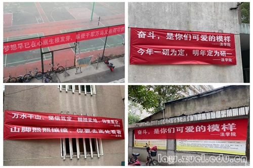 直上云霄鸣铿锵,桂冠加冕金凤舞。考研学子宿舍楼下,挂起了写有励志标语的横幅。一条条红色横幅,是冬日校园里的一抹亮色,期待不一样的风景让同学们充满信心,用毅力和坚持成功到达梦想彼岸!