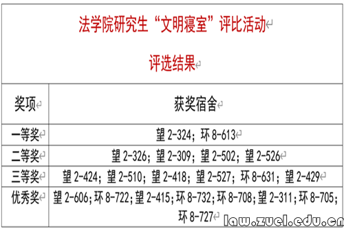 现在让我们共同揭晓法学院研究生“文明寝室”评比活动的评选结果!