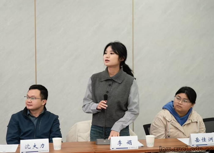 4名受助学生代表对校友们的慷慨捐助与热切关爱表达了由衷的感谢,他们将会更加珍惜求学时光,刻苦学习专业知识,努力成为有担当的法律人,将这份温暖传递下去。民商2303班李娟汇报了“班级助学金”工作小组的工作情况。