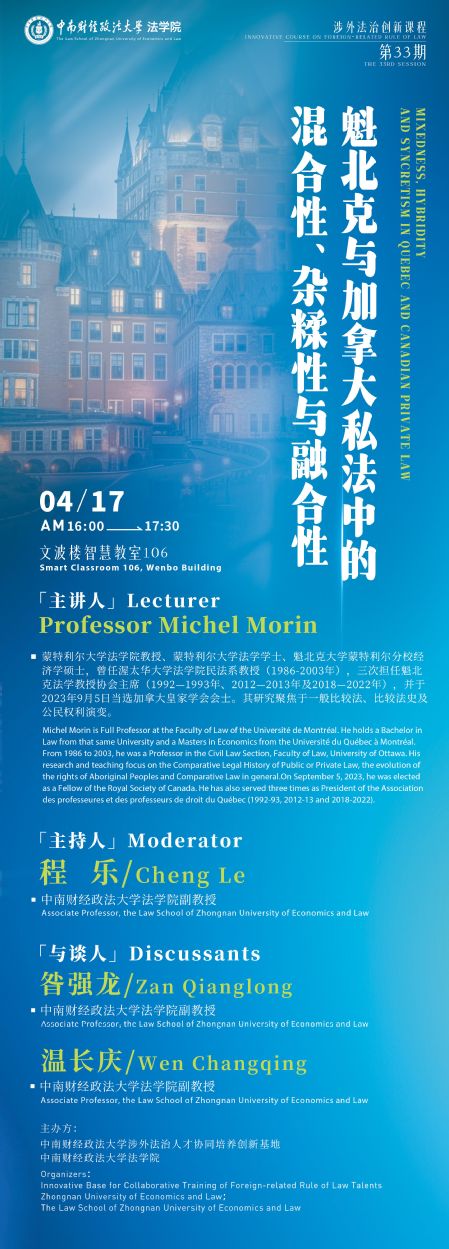 涉外法治创新课程第33期——魁北克与加拿大私法中的混合性、杂糅性与融合性