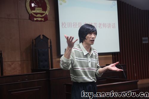校田径队主教练李健芳老师则以“精气神”为切入点,将多年从事体育事业的经验倾囊相授。他希望在本次运动会上,运动员们能树立“西瓜也要,芝麻也要”的竞争思想,并对学院组织队员训练提出了三点建议:第一,充分调动积极性,力求发挥每个同学的能力;第二,从报名表开始精心策划,合理地利用比赛规则;第三,参赛项目细分小组,由专人带队练习,这一点与法学院今年创新实施的项目队长制度不谋而合。随后他向在座各位传授了4*100米接力、拔河等比赛的技术要点,并亲身示范支撑后蹬腿跑、侧交叉跑等针对跑步练习的步法。
