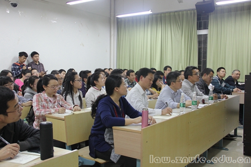 4 月 1 日上午,由许育典教授主讲的“因为懂得所以慈悲的法律观”讲座在文添楼 112 教室举行。我院宪法与行政法学系张青波和曾祥明老师作为嘉宾到场聆听,王广辉担任讲座主持人。