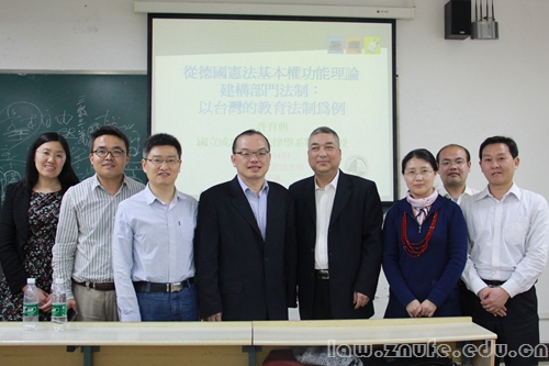3月31日晚,我国台湾地区成功大学法律学系特聘教授许育典教授在文添楼107教室开展主题讲座。我院宪法与行政法学系王广辉教授,副院长胡弘弘教授,陈新副教授以及曾祥明老师到场聆听。张青波副教授担任讲座主持人。