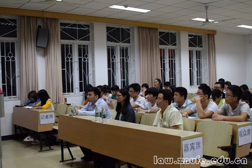 当日晚上七点,专题讲座准时开讲。邹检针对当前部分大学生“有专业没敬业、有知识没文化、有追求没信仰”的问题,围绕“法律人”、“人格”和“完善”三个关键词,结合法律实践和丰富案例,深入浅出,引经据典,脱稿用近两个小时,深刻阐述了如何完善法律人人格的若干问题,让刚跨入法学大门,对“法律人”充满憧憬的法学本科生充分认识到中国法律人人格现状,为未来的“法律人”的成长指明了方向。讲座气氛时而轻松愉悦,时而发人深省,时而会意大笑,时而掌声阵阵。课后半小时的互动交流时间更是精彩纷呈,学生提问针砭时弊,大胆犀利,刁钻古怪,出其不意。邹检用深厚的法学功底和文化底蕴,循循善诱赢得大家心悦诚服,连珠妙语博得了听众阵阵喝彩。