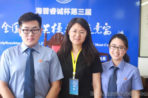 第二场小组赛中,我校代表队扮演辩护方,对阵西北大学。我校黄茜、胡松扮演辩护人,徐博扮演被告人,激烈的比赛过后,我方代表队以2:1的成绩胜出,成功晋级半决赛。队员黄茜由于表现突出获得“优秀辩手”称号。